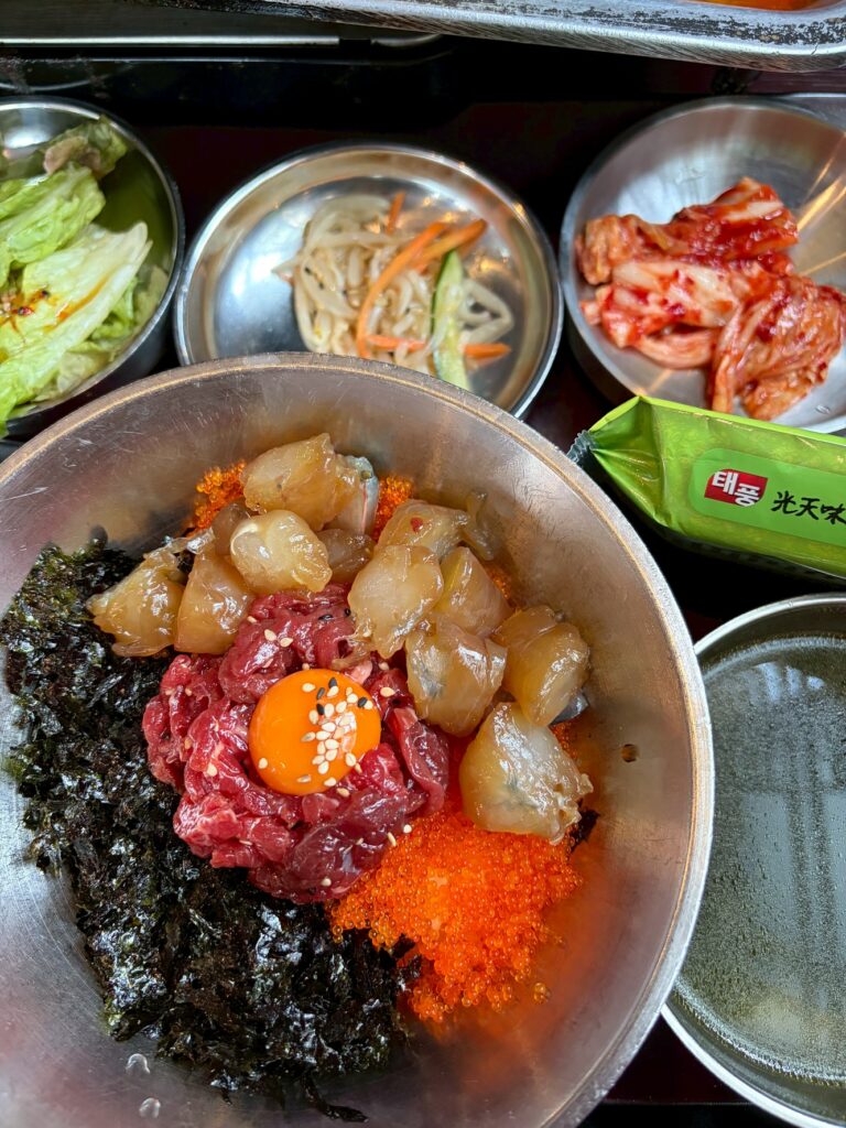 「和牛ユッケ&カンジャンセウビビンバ」です。